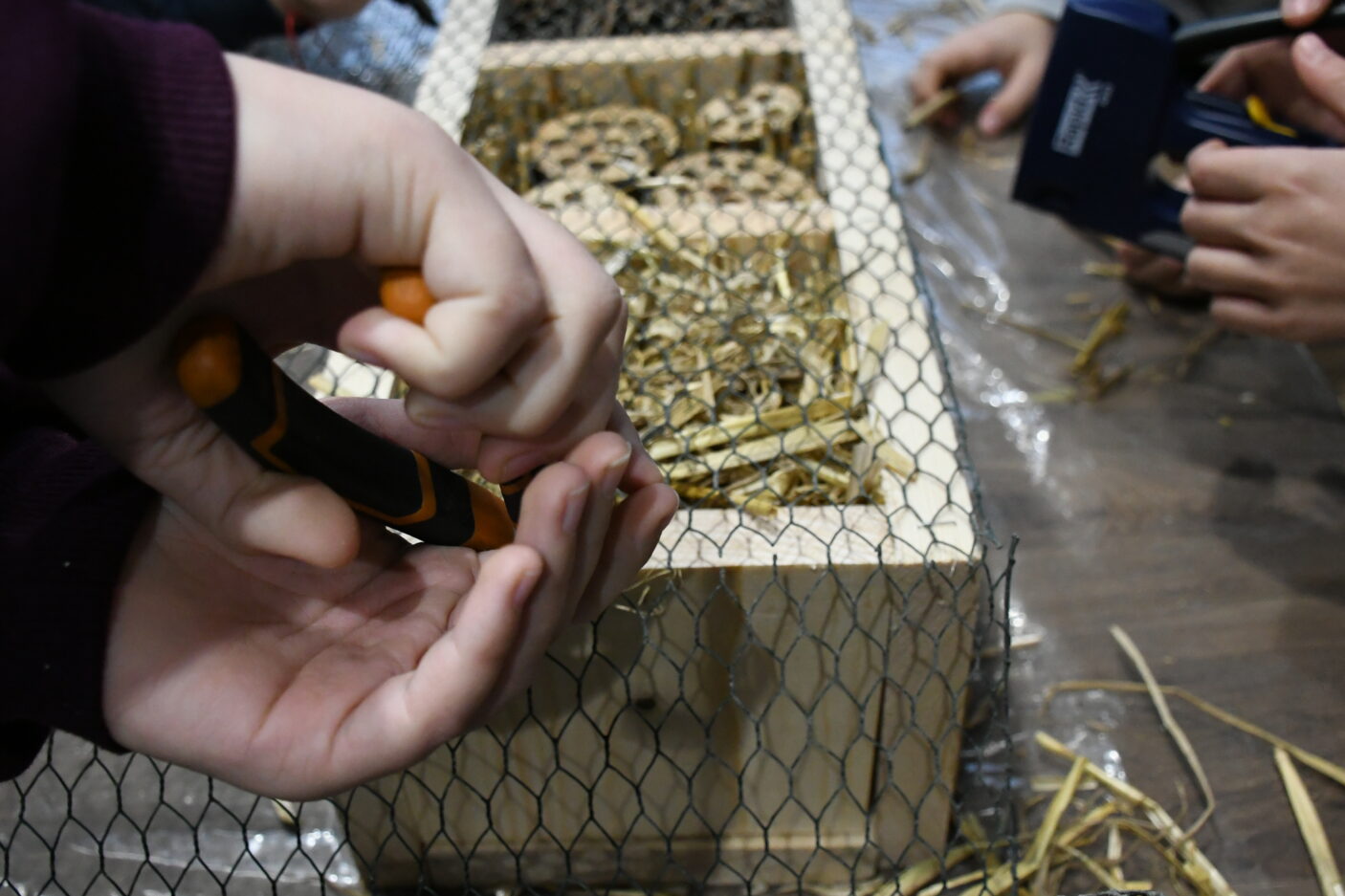 Uczniowie nie tylko poznali zasady tworzenia bezpiecznych schronień dla owadów, ale również dowiedzieli się, że owady zapylające są kluczowe dla utrzymania bioróżnorodności i produkcji żywności. Prowadzący warsztaty zapoznał dzieci z najpopularniejszymi gatunkami owadów zapylających występujących na terenie gminy Buczkowice oraz w Polsce. Przybliżone zostały również ich cechy charakterystyczne, sposób ich życia oraz zostały omówione ciekawostki z nimi związane (m.in. murarka ogrodowa–pszczoła samotnica, złotook pospolity, biedronka siedmiokropka).